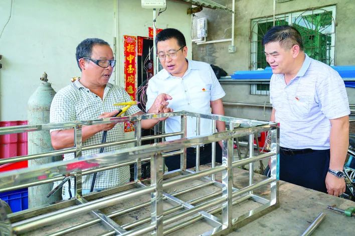 李国旗(左一)在惠州联通扶贫工作组的帮助下做起铝合金门窗生意,日子越过越好。
